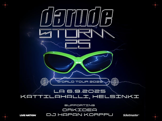 Suomalaisen konemusiikin kansainvälinen kärkinimi Darude juhlii 25–vuotista uraansa massiivisella STORM25-maailmankiertueella, joka tuo artistin Suomeen juhlakeikalle syksyllä 2025. Juhlakonsertti järjestetään lauantaina 6. syyskuuta Helsingin Kattilahallissa. Illan vierailevina artisteina esiintyvät Orkidea ja Dj hapan korppu. Liput tulevat myyntiin maanantaina 12. toukokuuta klo 10.00, ennakkomyynnit alkavat huomenna. Juhlavuosi noteerataan Suomessa poikkeuksellisella tavalla tänään kun kuusitoista radiokanavaa ja 67 kauppakeskusta eri puolilla maata soittavat ikonisen Sandstorm-kappaleen samanaikaisesti tänään torstaina klo 9.15.