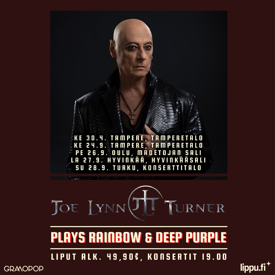 Yhdysvaltalainen Joe Lynn Turner palaa syyskuussa Suomeen osana kiertuettaan, jolla hän esittää Rainbow’n ja Deep Purplen tunnetuimpia hittejä. 1980-luvulla sekä Rainbow’n että Deep Purplen solistina tunnetuksi tullut Turner konsertoi syyskuun lopussa Tampereella, Oulussa, Hyvinkäällä ja Turussa. Konserttien lipunmyynti alkaa tänään.