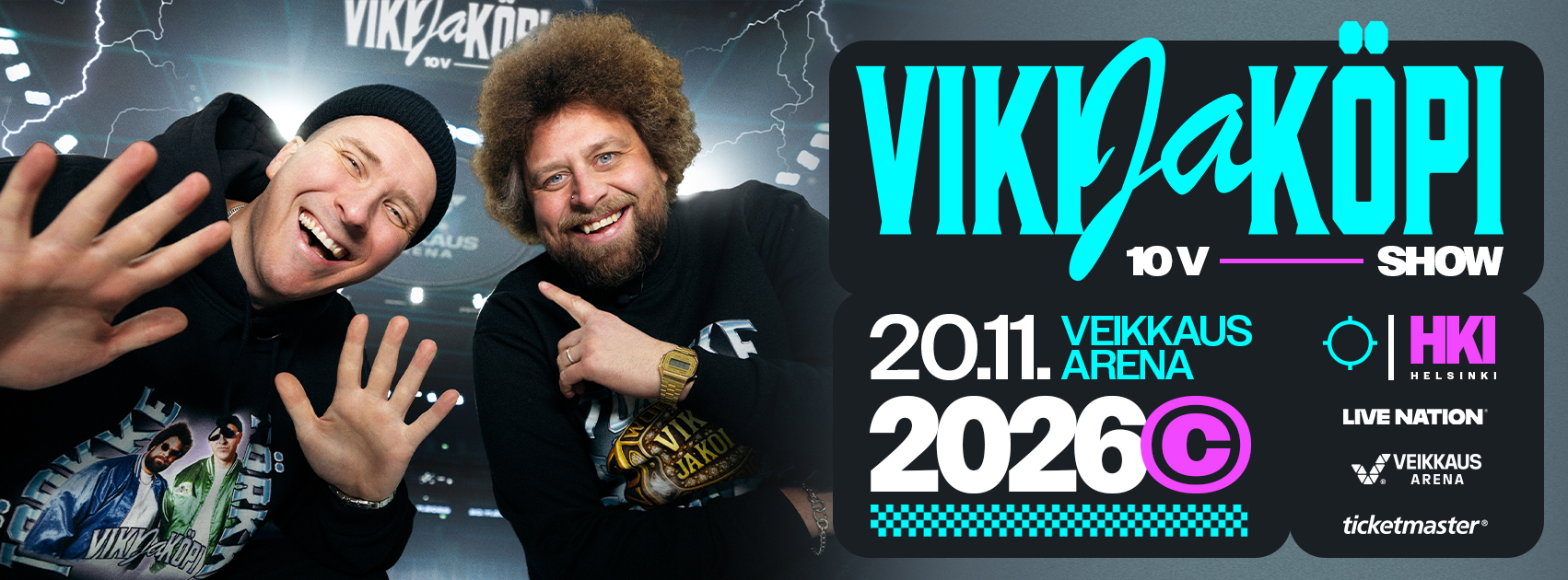 Hiljattain kahdella Venlalla palkittu juontajakaksikko Viki ja Köpi juhlistavat 10-vuotista taivaltaan Helsingin Veikkaus Arenalla perjantaina 20. marraskuuta järjestettävällä VIKI & KÖPI 10V SHOW:lla. Ainutlaatuinen juhla-ilta tarjoaa läpileikkauksen suursuosiota nauttivan kaksikon 10-vuotiseen historiaan. Esityksen liput tulevat myyntiin tiistaina 17. helmikuuta.