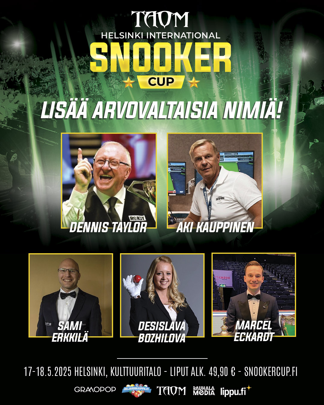 TAOM HELSINKI INTERNATIONAL SNOOKER CUP JULKISTAA LISÄÄ MIELENKIINTOISIA NIMIÄ!